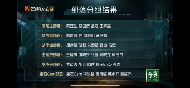 最后,队长个喜最高的陈楚生部落、林志颖部落只能4人阵型,因为其他的部落都选了5人阵型